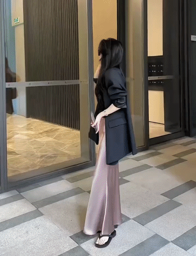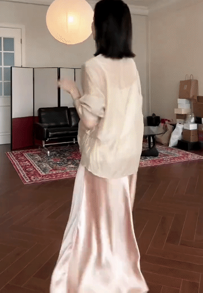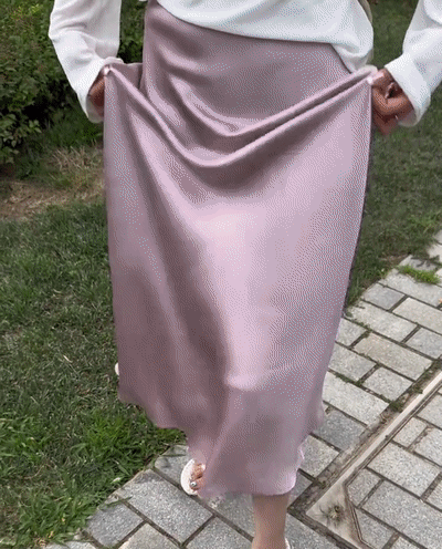 กระโปรงทรง A ผ้าไหมเงาแบบกระโปรงหางปลา